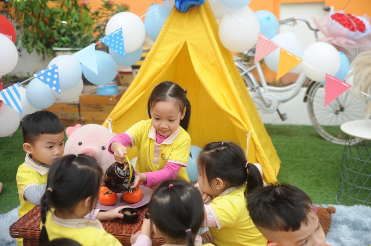 Mỗi bữa tiệc buffet, bé không chỉ được ăn ngon, được giao lưu mà còn được cô giáo hướng dẫn kĩ năng ăn tiệc phù hợp, văn minh, lịch sự, đúng chuẩn những em bé hiện đại và thanh lịch.Bên cạnh đó các bé còn được tham gia căm trại với rất nhiều các hoạt động vui chơi bổ ích