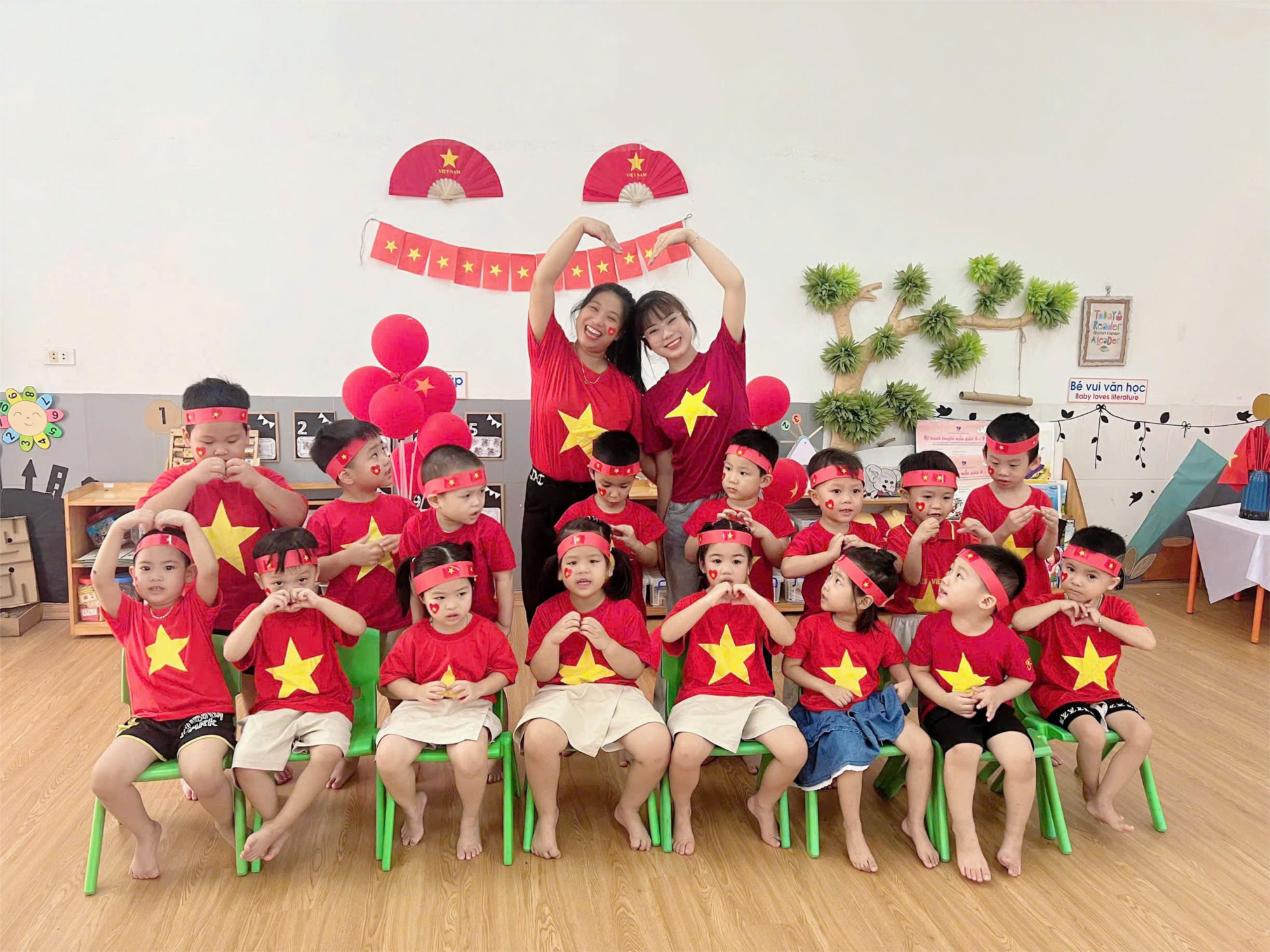 Hân hoan cùng cả nước tham gia các hoạt động ý nghĩa chào mừng 80 năm Ngày Quốc khánh nước Cộng hòa xã hội chủ nghĩa Việt Nam. Hàng loạt các hoạt động được diễn ra sôi nổi trên tất cả các nhóm lớp của trường mầm non Đông Dư. Ngày hôm này, cô và trò lớp MGN B2 đã cùng nhau làm những chiếc Băng đô yêu nước. Với màu chủ đạo là màu đỏ và vàng các bạn nhỏ đã cùng các cô làm những chiếc băng đô thật xinh và đáng yêu. Được tự tay làm những chiếc băng đô, bạn nhỏ nào cũng vui lắm. Xin mời các bố mẹ hãy cùng ngắm nhìn những khoảnh khắc đáng yêu này nha