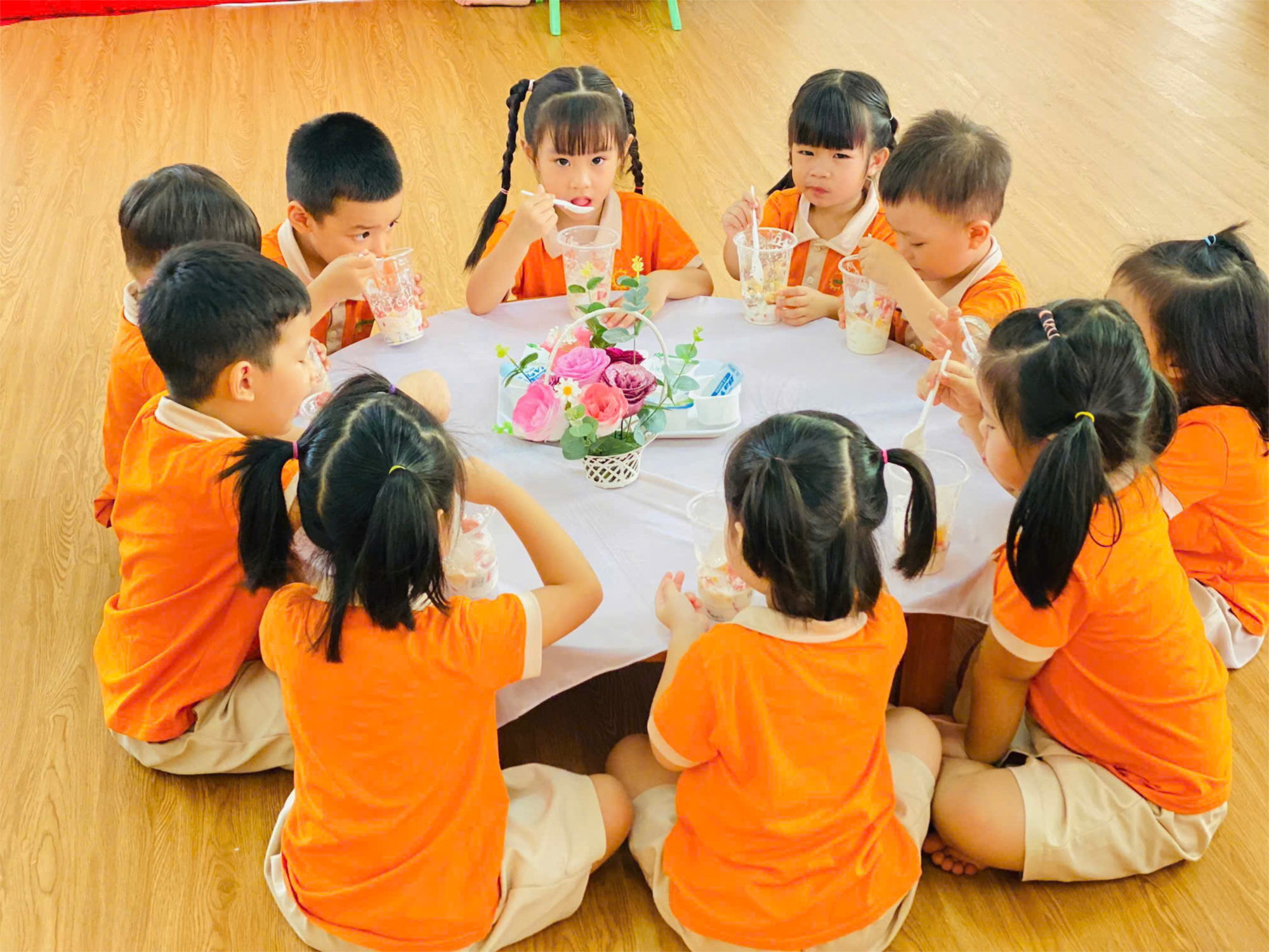 Ngày hôm nay bạn chưa nghĩ ra ăn món tráng miệng gì thú vị mà lại đơn giản, xin mời bạn cùng đến với cô và trò MGN b2 trường mầm non Đông Dư để làm món tráng miệng ngon lành này nhé. Nguyên liệu chỉ đơn giản là những hộp sữa chua và các loại quả thái nhỏ vừa phải, các bạn nhỏ chỉ cần lựa chọn vị mình yêu thích và trộn đều với sữa chua, vậy là các bạn đã có 1 món tráng miệng hấp dẫn rồi. Qua hoạt động các bạn được rèn kĩ năng xúc thìa, khéo léo trộn các nguyên vật liệu để không bị nát mà lại ngon miệng.