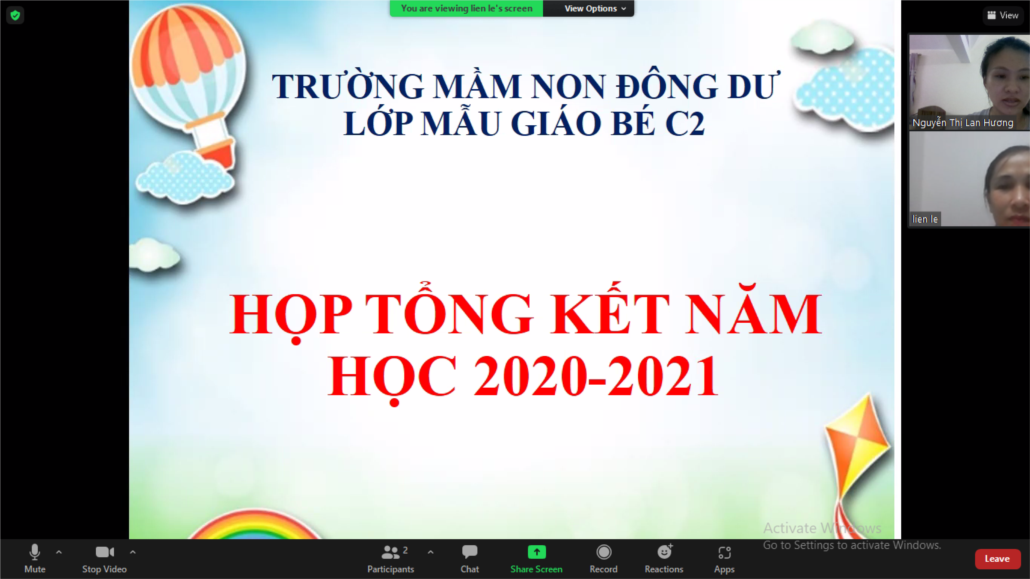 Thời gian thấm thoắt trôi, năm học 2020-2021 đã khép lại. Được sự chỉ đạo của ban giám hiệu nhà trường, tối ngày 28/8/2021, lớp mẫu giáo bé C2 tổ chức lễ tổng kết năm học 2020 – 2021qua zoom cho các bé.