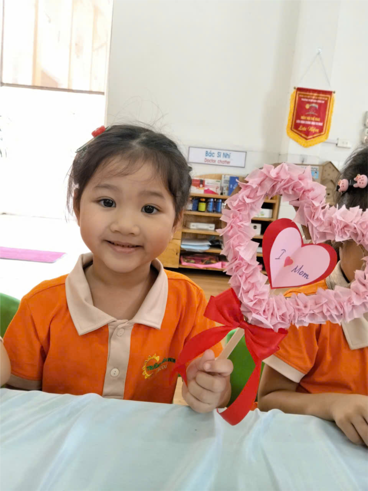 Hoạt động không chỉ giúp trẻ rèn luyện sự khéo léo, khả năng sáng tạo, mà còn gieo vào lòng con tình yêu thương, lòng biết ơn đối với mẹ, bà và cô giáo – những người luôn chăm sóc, yêu thương con mỗi ngày.
