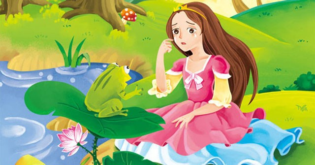 Công chúa út nói với Ếch Xanh: "Quả cầu vàng của ta rơi xuống hồ nước mất rồi."