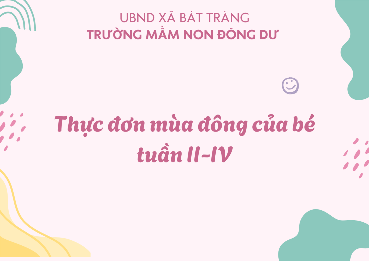 Nhà trường xin gửi đến quý phụ huynh thực đơn dinh dưỡng dành cho các bé trong tuần. Thực đơn được xây dựng khoa học, cân đối giữa các nhóm chất, đảm bảo cung cấp đầy đủ năng lượng cho các hoạt động học tập và vui chơi của bé mỗi ngày. 💪👶