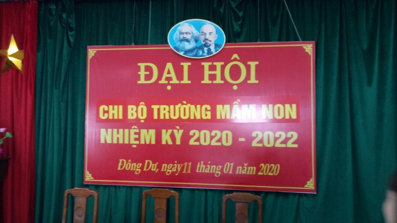 Thực hiện Kế hoạch số 14-KH/ĐU ngày 14/10/2019 của Đảng ủy xã Đông Dư, Hướng dẫn số 01- HD/ĐU ngày 11/11/2019 của Đảng ủy xã Đông Dư về tổ chức Đại hội chi bộ trực thuộc Đảng bộ xã, nhiệm kỳ 2020 - 2022. Sáng ngày 11/1/2020, chi bộ trường mầm non long trọng tổ chức Đại hội chi bộ nhiệm kỳ 2020 - 2022.