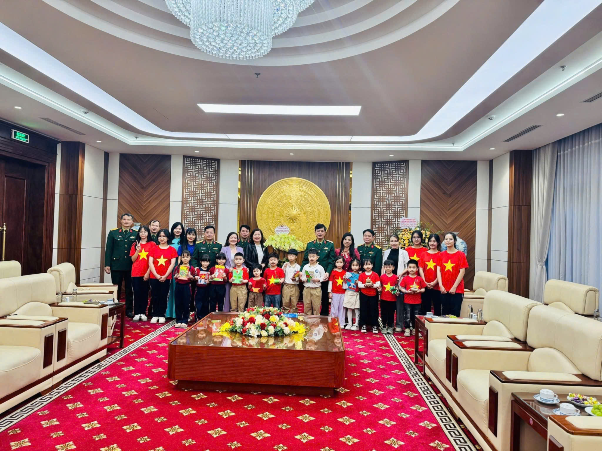 Đặc biệt, các bé đã chuẩn bị những món quà nhỏ xinh tự tay làm như thiệp chúc mừng, hoa giấy, tranh vẽ… gửi tặng các chú bộ đội như lời cảm ơn chân thành và ngây thơ nhất của trẻ thơ dành cho những người đang ngày đêm canh giữ bình yên Tổ quốc. Những món quà giản dị nhưng tràn đầy yêu thương đã mang đến nhiều xúc động và niềm vui cho các chiến sĩ.
