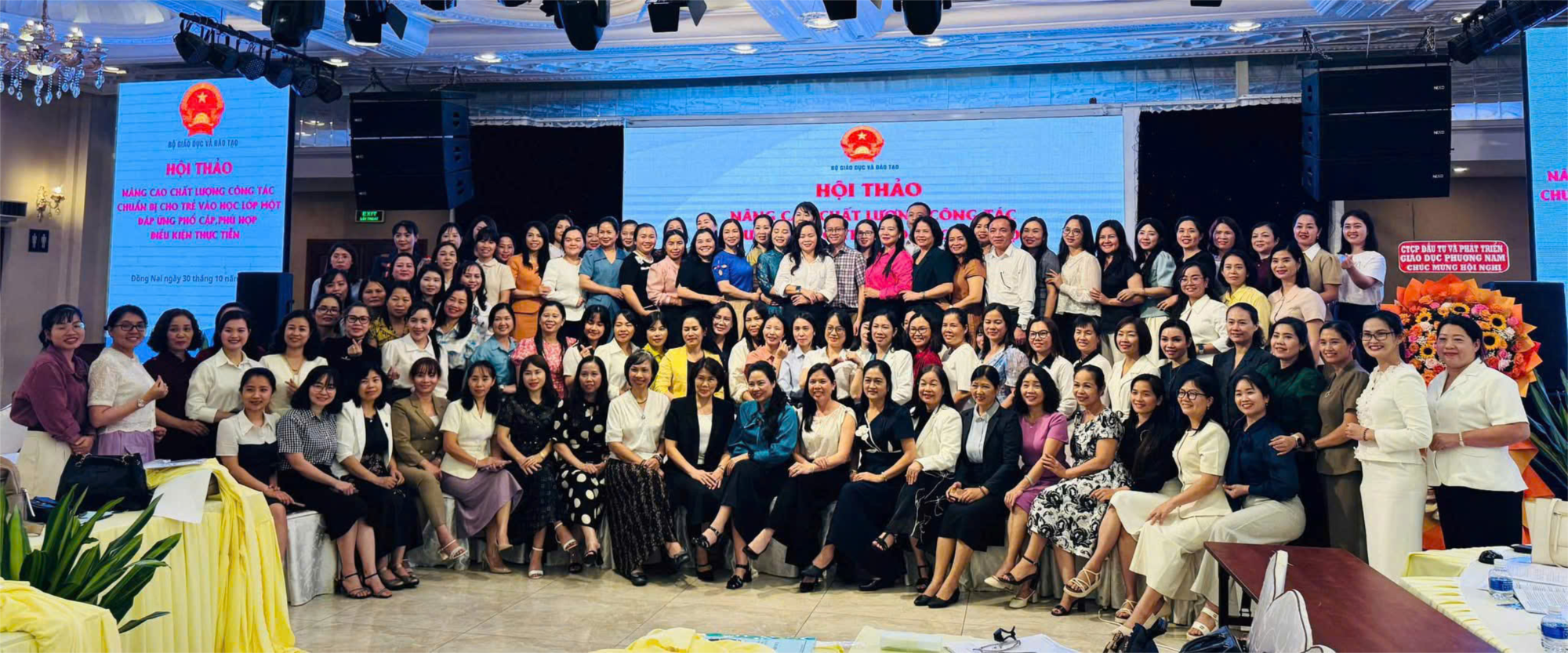 Hội thảo tại khách sạn Đồng Nai. Đoàn tham dự Hội thảo toàn quốc tại Khách sạn Đồng Nai, dưới sự chỉ đạo của đồng chí Hoàng Thị Dinh – Phó Vụ trưởng, Vụ Giáo dục Mầm non (Bộ GD&ĐT). Tại đây, các đại biểu được lắng nghe nhiều tham luận, nhiều sáng kiến từ các Sở Giáo dục và Đào tạo đại diện cho các địa phương tỉnh, Thành phố trong cả nước, cùng chia sẻ kinh nghiệm và đưa ra các giải pháp thực tiễn nhằm nâng cao chất lượng công tác phổ cập và chuẩn bị cho trẻ sẵn sàng vào lớp Một, phù hợp với thực tiễn địa phương.