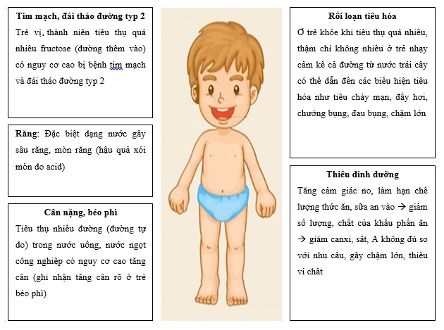 - Trẻ em nếu lượng đường tiêu thụ >20% tổng năng lượng có nguy cơ tăng cholesterol và triglycerid máu và có thể ảnh hưởng đến chuyển hóa Glucose và dáp ứng insulin của cơ thể.